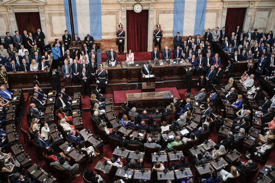 La apertura de las sesiones ordinarias del Congreso tiene como propósito constitucional que el presidente realice un informe del estado de la Nación y, fundamentalmente una perspectiva para el año parlamentario que comienza. Sin embargo, asistimos a una impúdica escenificación teatral televisiva de apoyo absoluto a Milei, a su discurso provocador y amenazante a los parlamentarios, tanto a los opositores de UxP como a los de los bloques que no se le subordinaron y votaron en contra de la ley “para el olvido”, inflingiendo una dura derrota al proyecto destructor del Estado.