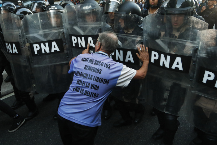 El presidente Milei sostiene su pulsión verbal y descalificante, convencido de que con esa conducta “gana”. Así es que recrea sus eslóganes brutales, adaptados a la coyuntura: “niñas y niños enfermos del Garrahan ¡afuera!, profesionales de la salud ¡afuera!, personas con discapacidad ¡afuera!. Claro que los jubilados sufren su "¡afuera!" hace rato, a fuerza de palos, represión y hambre. Acaso, ¿todos ellos no saben que “no hay plata”?, ¿Y que lo primero y sagrado es pagarle a los prestamistas de Wall Street y de las cities criollas?. Últimamente va modelando su política y accionar junto a su ministra Bullrich y su vocero Adorni, así es que nos encontramos con otros agregados: fotógrafos ¡afuera!, cultura, teatros y bibliotecas populares ¡afuera!, tareferos misioneros ¡afuera!; potenciando su permanente agresividad hacia la parte del pueblo que rechaza, o cuestiona sus acciones y dichos. Lo hace amparado por el DNU 70/23 y la Ley Bases votada por sus aliados de derecha y los amigables con la justificación de que “hay que darle gobernabilidad”.